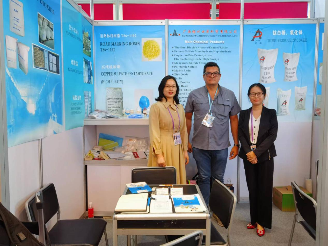 梧州口岸公司共參加三期廣交會(huì)線下展,每期參展產(chǎn)品均為公司出口業(yè)務(wù)的拳頭產(chǎn)品,包括鈦白粉(二氧化鈦)、高純度硫酸銅、氧化鋅、松香、八角及木衣架等化工品、土畜產(chǎn)品、保健品和輕工工藝品。各業(yè)務(wù)部門(mén)搶抓機(jī)遇,精心準(zhǔn)備產(chǎn)品樣板,認(rèn)真布展,并通過(guò)視頻、圖片、文字及樣品展示等方式,全方位推介參展產(chǎn)品,備受境內(nèi)外客商青睞。所在展位的客商訪問(wèn)量和初步意向簽約量均頻頻告捷。參展首日,展位訪問(wèn)量平均每小時(shí)70余人次,有初步采購(gòu)意向的占比達(dá)10%。